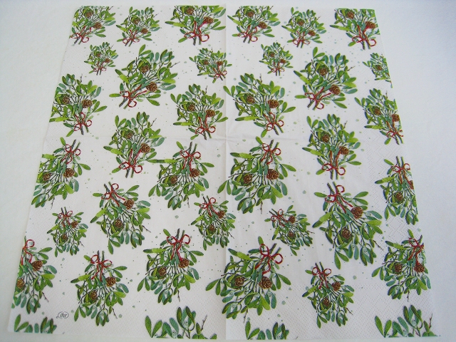 ペーパーナプキン 【Mistletoes】 サイズ:約33センチ×約33センチ 1袋:5枚入 お菓子を包んだり、 ハンカチやティッシュの代わりに、 使い方いろいろ楽しめます。