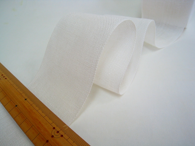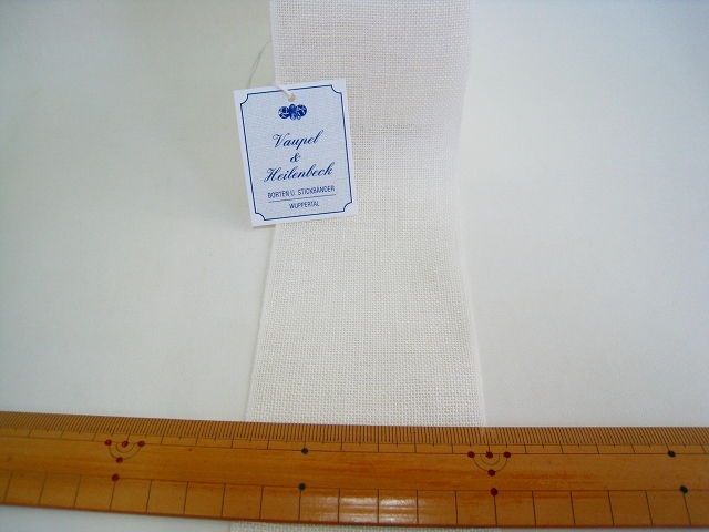 刺繍用リネンテープ 幅約70ミリ(7cm) 麻100% ドイツ製 V&H(Vaupel&Heilenbeck)社製 縮みが出る場合がございますので 生地と合わせて縫うときは先に水通しをしてください。 ※幅7センチ×長さ10センチ単位の価格です。 ※複数の御注文の場合は連続の長さでカットいたします。 【例】3個御注文の場合は、30センチになります。 ※30cm以上10cm単位でご注文ください。