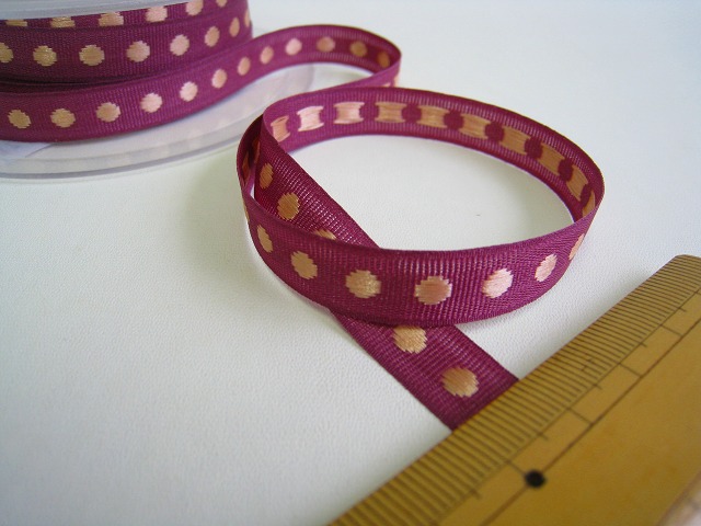 ドット柄リボンテープ 幅約10ミリ ポリエステル製 1個10センチの価格です 複数の御注文の場合は連続の長さでカットいたします。 【例】3個御注文の場合は、30センチになります。