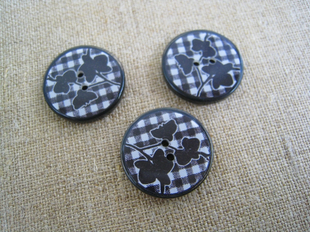 Jim Knopf*チェックに花*2穴ボタン