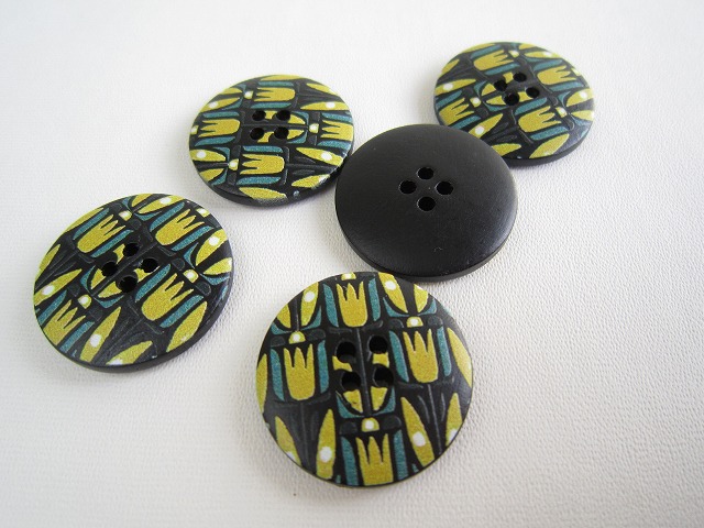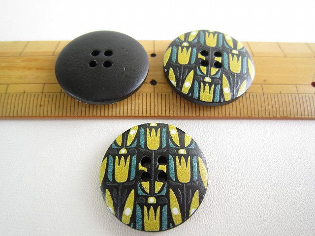 Jim Knopf*ウッドボタン*フラワープリント*ブラック