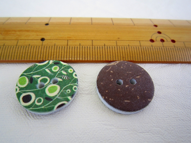 ドイツ ジムクノップ社『Jim Knopf』デザイン ココナッツとプラスチックのボタンです 2穴ボタンです ※天然の素材ですので、色や形が均一ではありません。 寸法:直径約20ミリ