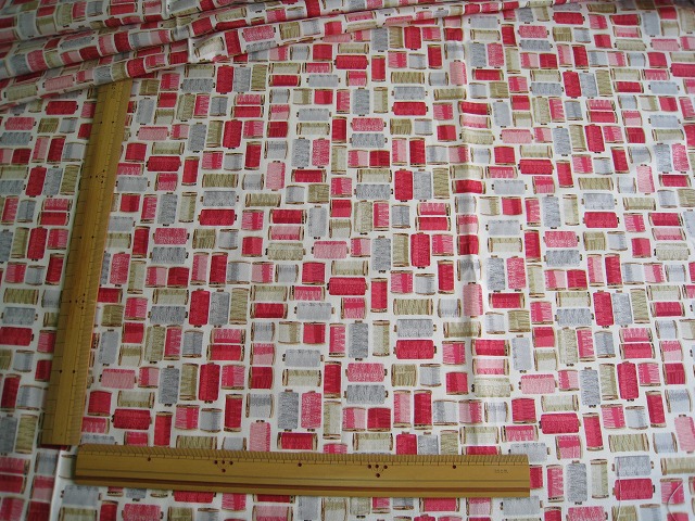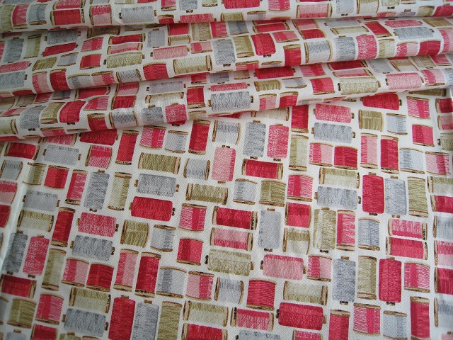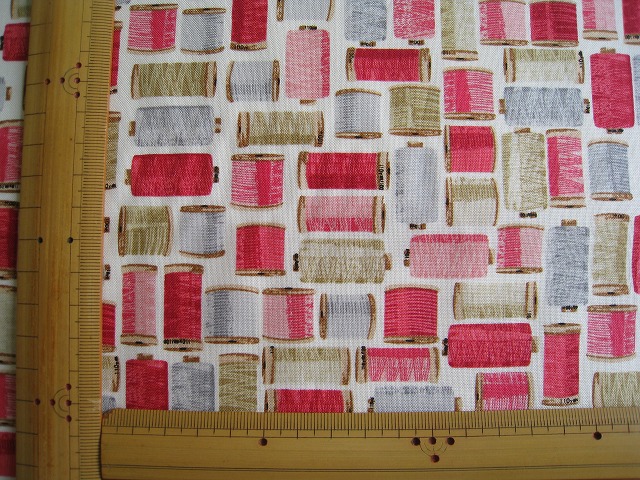 makower uk のプリントコットンです 【Stitch in Time Cotton Reels】 コットン100% 生地巾は110センチです。 ※1個:約幅54センチ×長さ50センチの価格です。 【例】2個御注文の場合は、幅110センチ×長さ50センチになります。 ※モニター等の環境で画面のイメージの色と実物の色が多少異なる場合がございます。 ※織物特有の織り傷が含まれる場合があります。