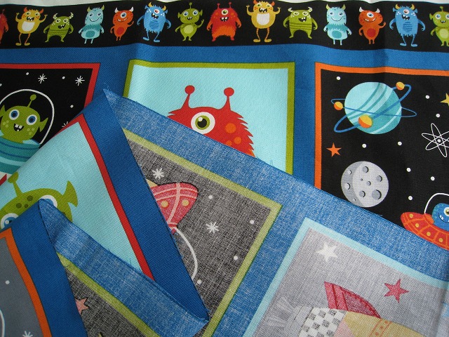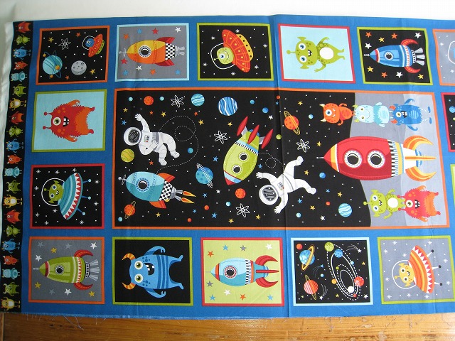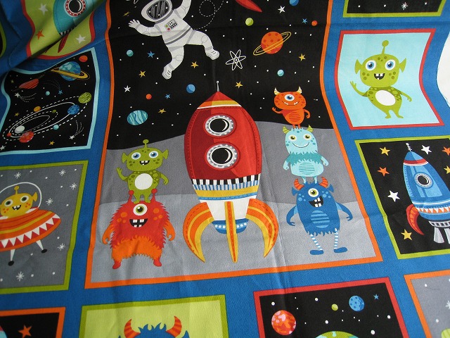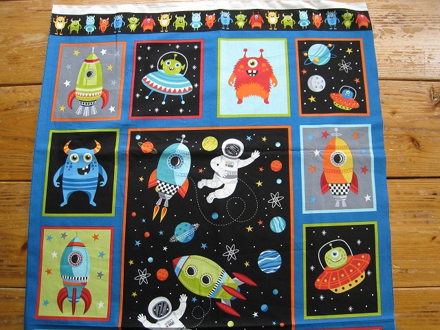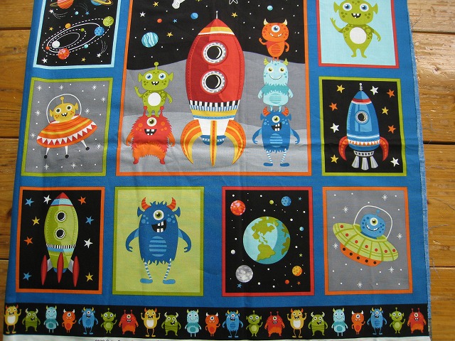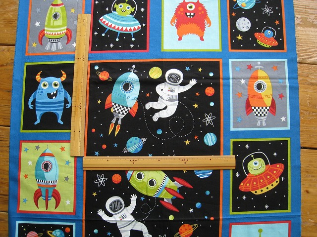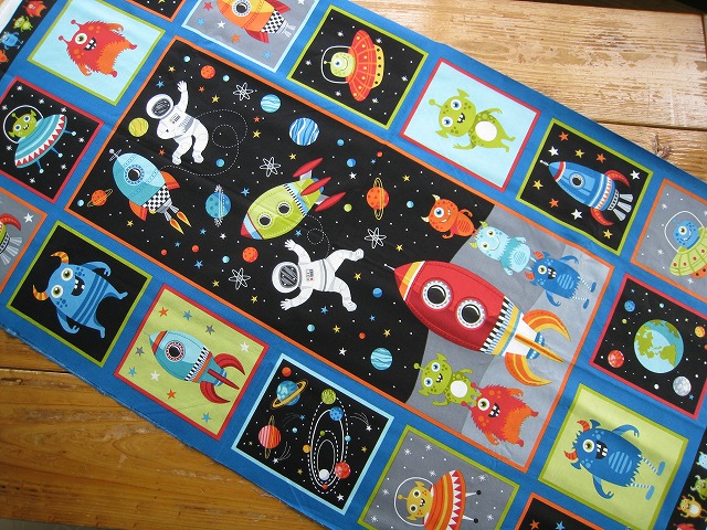 makower uk のプリントコットンです パネル柄 【Outer Space Panel】 コットン100% 生地巾は110センチです。 ※1個:約幅110センチ×長さ58センチの価格です。 【例】2個御注文の場合は、幅110センチ×長さ118センチになります。 ※モニター等の環境で画面のイメージの色と実物の色が多少異なる場合がございます。 ※織物特有の織り傷が含まれる場合があります。