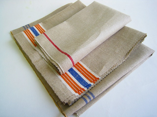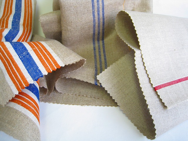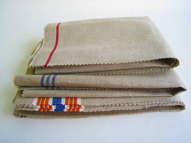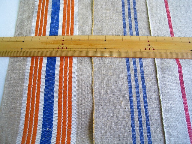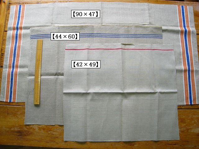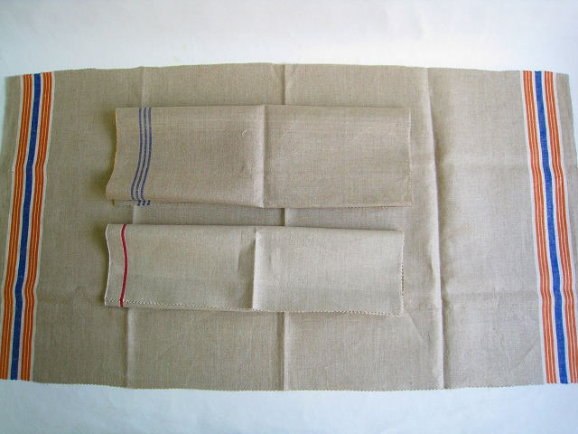 ドイツ マンゲルリネン(Mangeltuch)として使用されていました 麻100%のアンティークリネンです。 マンゲルリネン カットクロス3枚セットです。 それぞれの寸法 オレンジ&ブルーライン両側:約90×47センチ ブルー3本ライン片側:約44×60センチ レッド1本ライン片側:約42×49センチ とても古いものですので、 汚れ・シミ・キズ・シワ・使用感があります。