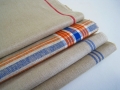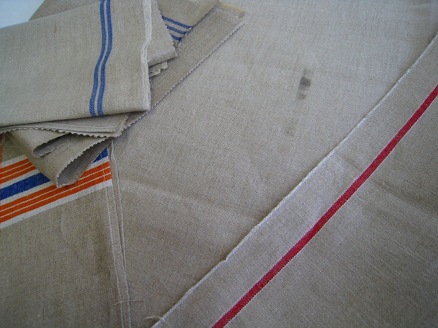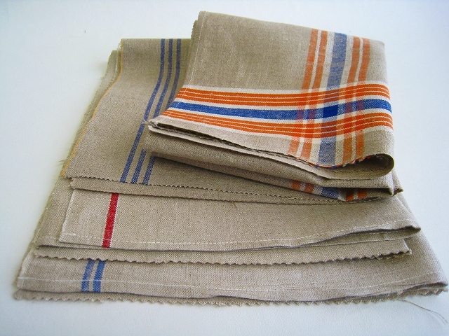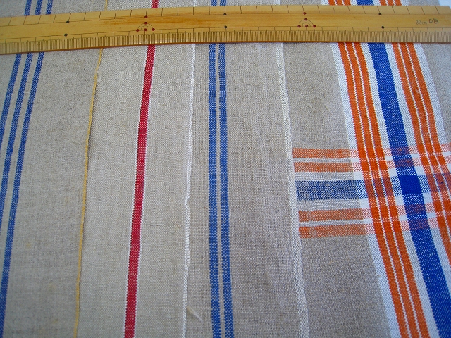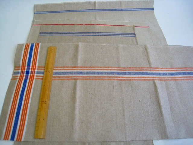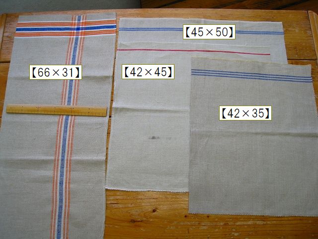 ドイツ マンゲルリネン(Mangeltuch)として使用されていました 麻100%のアンティークリネンです。 マンゲルリネン カットクロス4枚セットです。 それぞれの寸法 オレンジ&ブルーライン片側交差:約66×31センチ ブルー2本ライン片側:約45×50センチ ブルー3本ライン片側:約42×35センチ レッド1本ライン片側*約42×45センチ(シミ有) とても古いものですので、 汚れ・シミ・キズ・シワ・使用感があります。