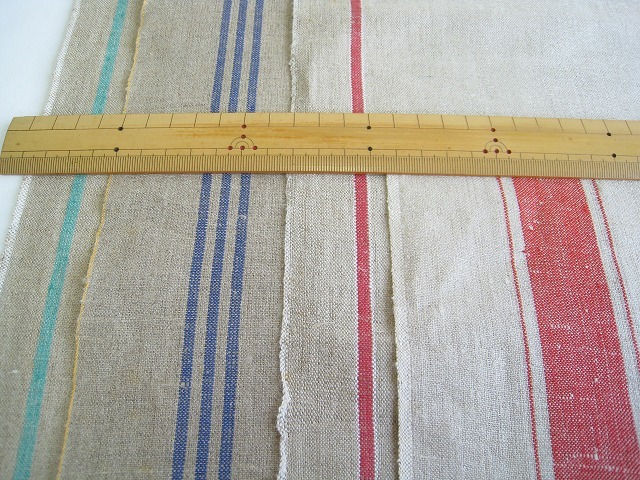 ドイツ マンゲルリネン(Mangeltuch)として使用されていました 麻100%のアンティークリネンです。 マンゲルリネン カットクロス4枚セットです。 それぞれの寸法 グリーンライン両側:約90×42センチ ブルー3本ライン片側:約40×35センチ レッド1本ライン片側:約42×40センチ レッド細太ライン片側:約50×13センチ とても古いものですので、 汚れ・シミ・キズ・シワ・使用感があります。