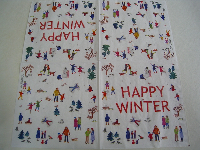 ペーパーナプキン 【Happy Winter】 サイズ:約33センチ×約33センチ 1袋:5枚入 お菓子を包んだり、 ハンカチやティッシュの代わりに、 使い方いろいろ楽しめます。