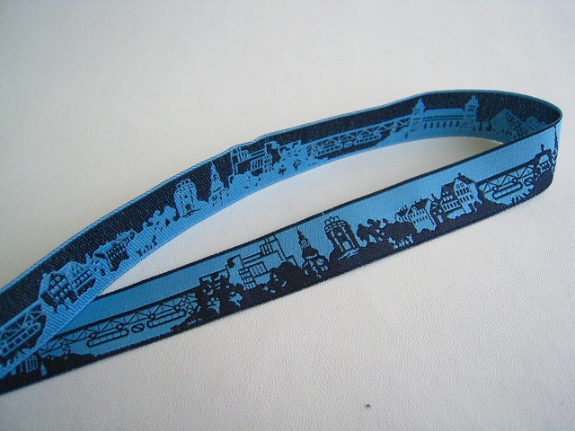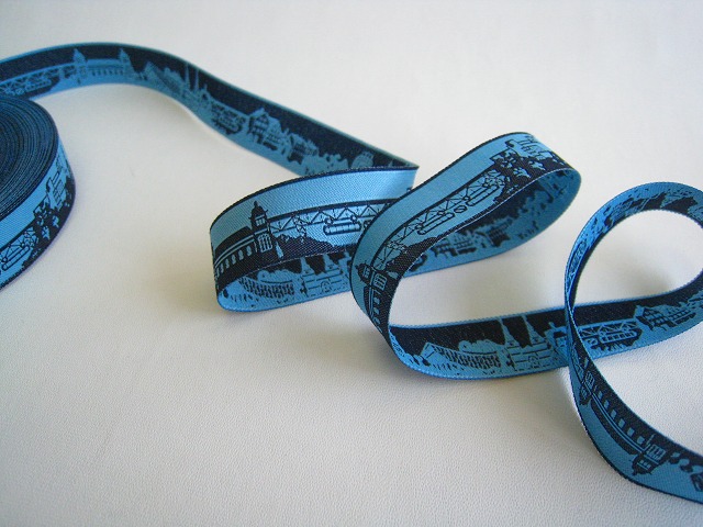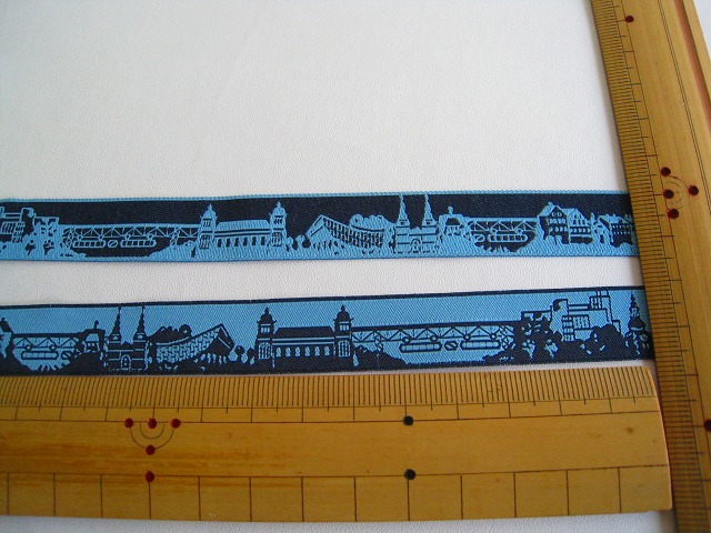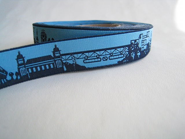 ドイツ製ジャガード織りリボンテープ 【Wuppertal】ヴッパータールの街並み模様です 幅約15ミリ 1個10センチの価格です 複数の御注文の場合は連続の長さでカットいたします。 【例】3個御注文の場合は、30センチになります。 ★御注文の長さによっては、絵柄が途中で切れる場合がございます 【Wuppertal】ヴッパータールは、カフカリボン工場がある街です。 世界最古のモノレール(空中鉄道)が今でもはしっています。
